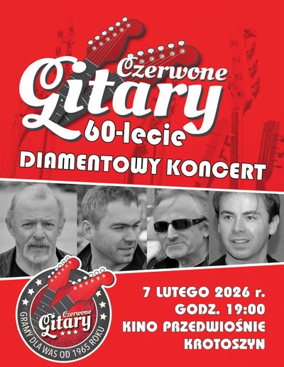 Czerwone Gitary należą do grona nielicznych zjawisk muzycznych, które stały się klasyką polskiej kultury popularnej. Diamentowy Koncert będzie przypomnieniem największych przebojów ze wszystkich płyt Zespołu. Ta (dwugodzinna) muzyczna wędrówka z niezapomnianymi hitami i nowymi piosenkami Zespołu, będzie gwarancją wspomnień, wzruszeń i zapowiedzią fantastycznej integracji widzów z Zespołem. Kilkudziesięcioletnia, konsekwentna praca Czerwonych Gitar i umiejętności odmłodzonego składu Czerwonych Gitar zostały docenione na Jubileuszowej trasie 55-lecia, która odniosła olbrzymi sukces. Do zobaczenia na Diamentowej trasie koncertowej, 60-lecia Zespołu!